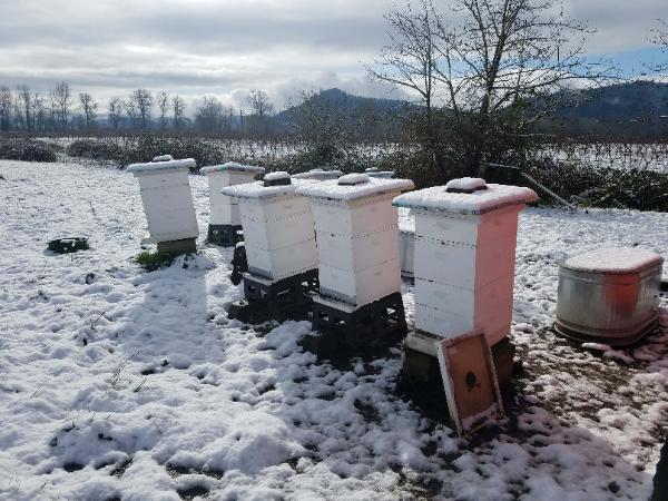 Pure Raw unfiltered Oregon Honey Our bees came through winter very well and are hard at work gathering and making honey from the first Spring flowers of Peach, Nectarine, Cherry, Pear, Plumb and other fruit trees blooming in the valley Later in the season the bees gather from the black berries and very late in the season the bees gather from the buckwheat and clover we grow here on the farm This combination gives the Raw Honey a most delicious flavor |